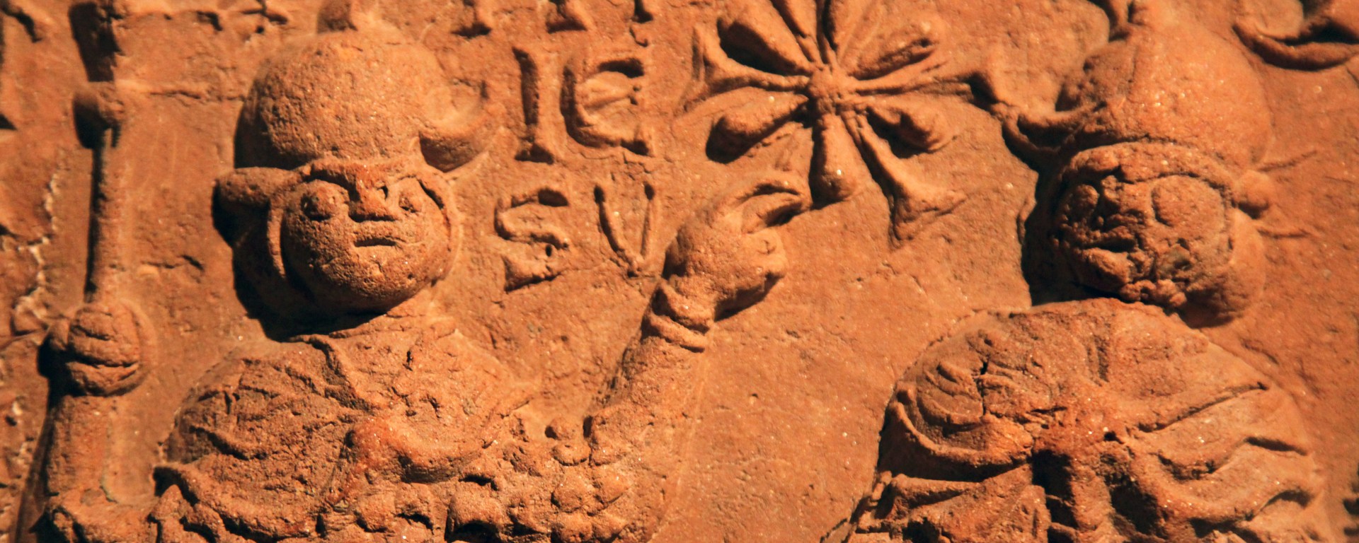 The presence of Latin is a characteristic feature of the Vinica tiles. Besides providing legends for the represented motifs, they often reproduce well known texts, most commonly taken from the Psalms. Following the standard practice of the time, the texts start and end with the sign of the cross and often form a sort of a frame around a figurative image. This unity of word and image enhanced a powerful visual message, in which the letters became an integral part of the relief representation.